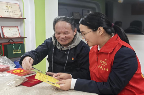“阿婆,我们来看您了!最近身体还好吗?”稠州银行杭州分行党员志愿者左光琴轻敲开耀华社区90岁独居老人陈玉茹奶奶的家门。接过沉甸甸的慰问礼包,老人紧紧握住她的手:“你们年年都来,比我子女来得还勤快!”为确保关怀精准送达,稠州银行各党支部与社区网格员组建“党建联盟”,提前一个月摸排老人信息。哪个楼道没有电梯,哪位老人听力不好,谁家需要定期送药,哪位老人腿脚不变......这些细节都被一一记录在党员的“民情日记”上。