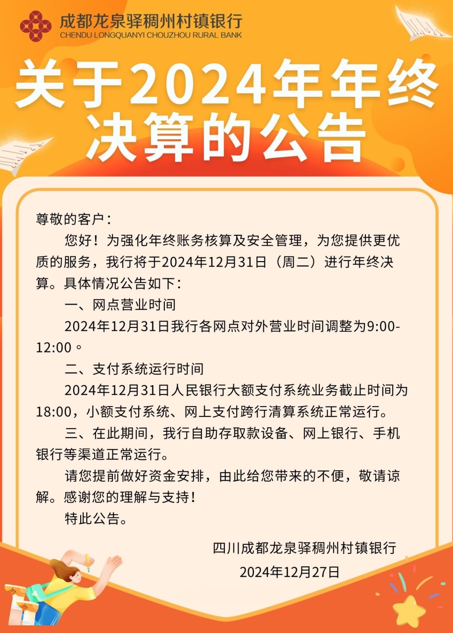 龙泉驿稠州村镇银行关于2024年年终决算的公告